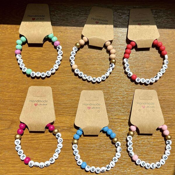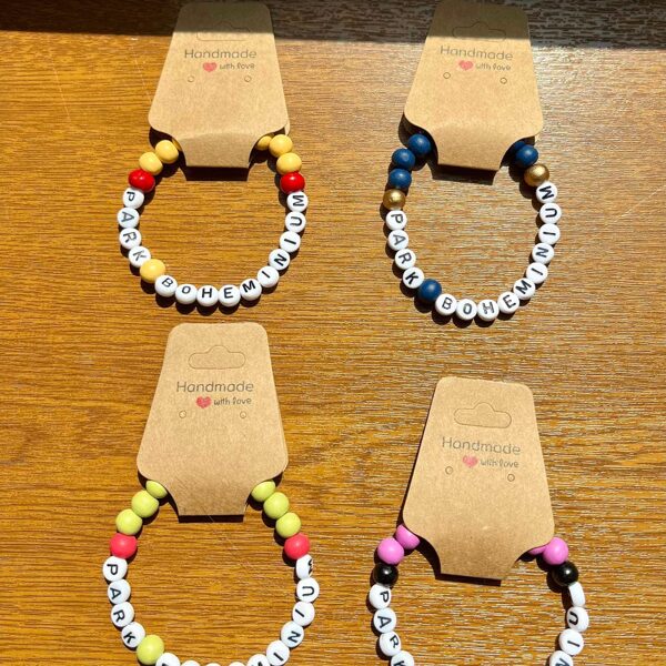 Drewniane bransoletki wykonuję na silikonowej gumce.